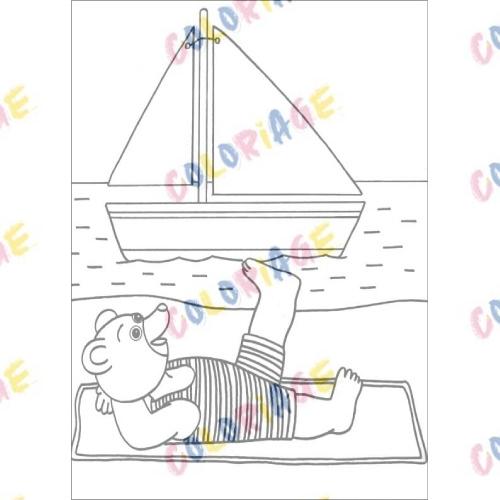 coloriage Petit Ours Brun et un bateau