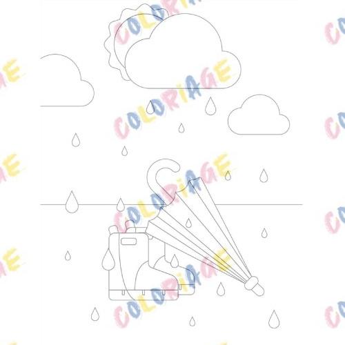 coloriage pluie et parapluie